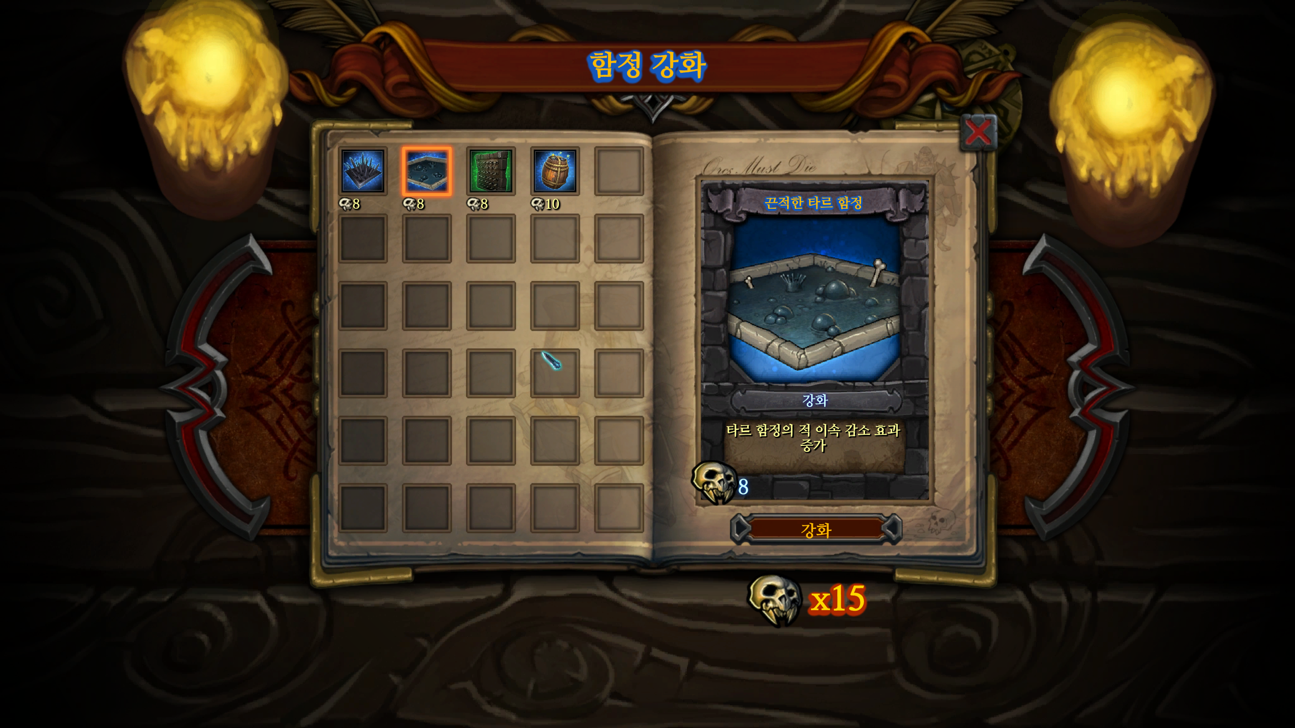 함정 중 타르 함정은 게임 내내 두루 쓰이므로 가장 먼저 업그레이드를 해 주자.