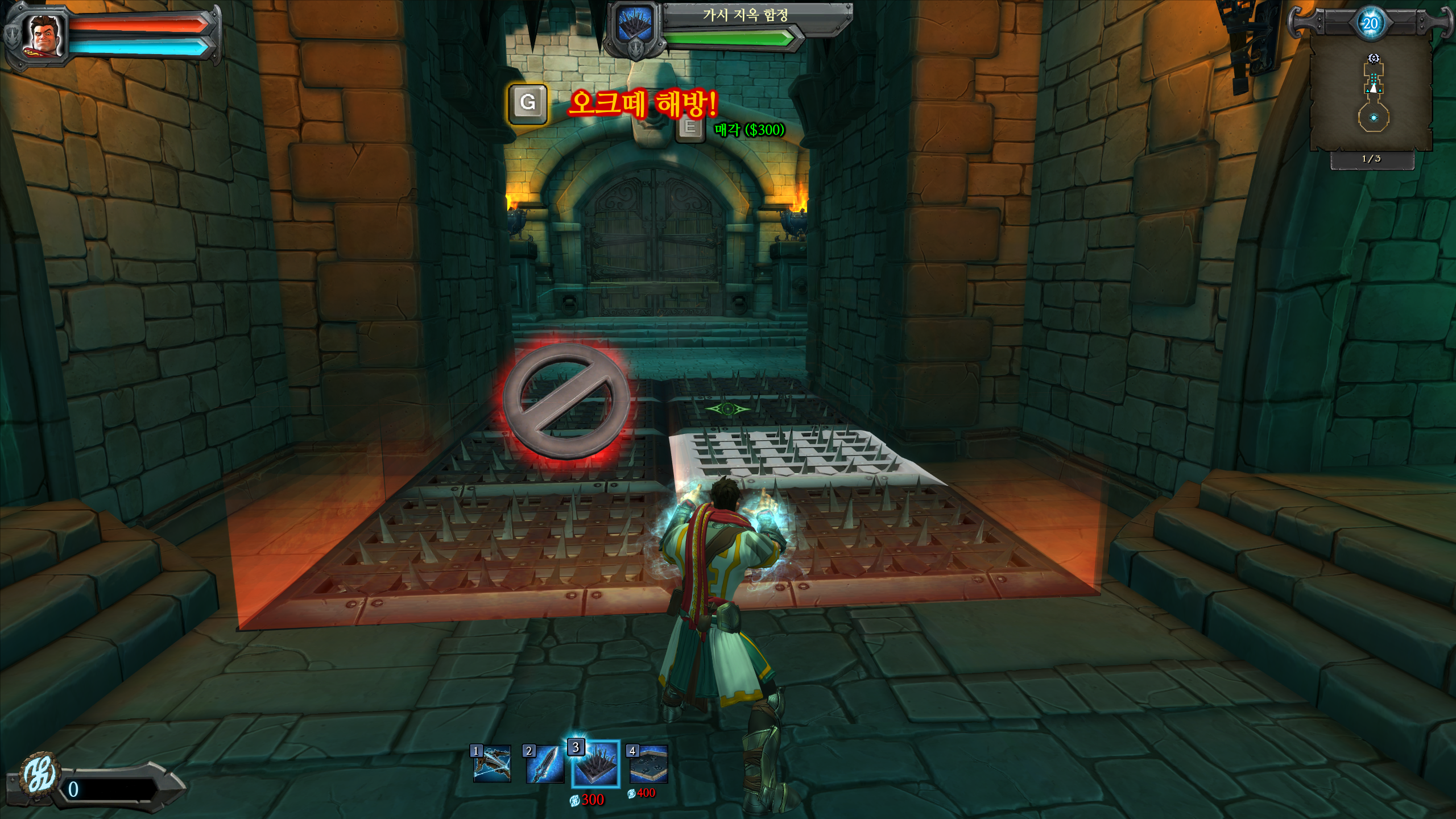 첫 스테이지니만큼 어렵지 않다. 어렵지 않은 대신에 함정의 쓰임새와 캐릭터의 조종법을 익혀야 한다.