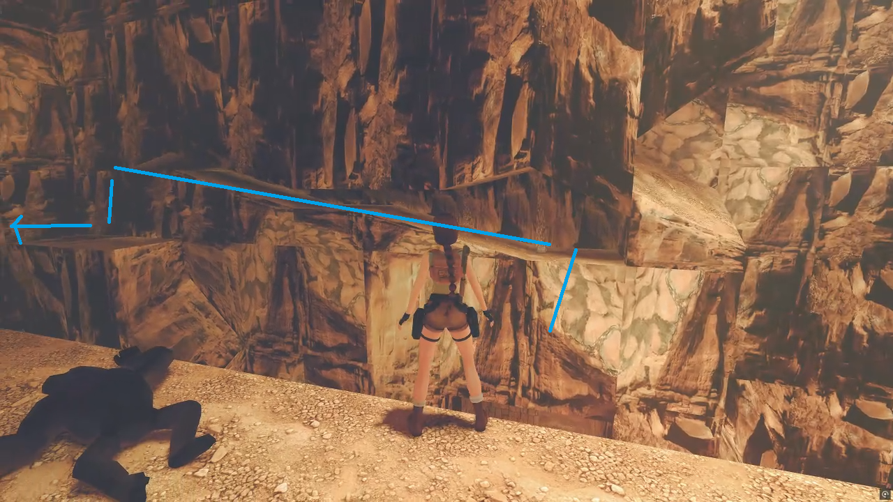 위 화살표대로 진행하면 된다. (벽에 매달려 간 후 자세히 살펴보지 않으면 통로가 안 보인다. 필자는 여기서 길을 몰라 한 시간을 헤매었다.) 무너지는 발판을 거쳐 진행하다보면 처음 이 스테이지에 도착했던 풀장의 2층에 도착하게 된다. 이후로도 긴 길을 가게 되는데 분기가 없는 외길이라 길을 잃을 염려는 없다.