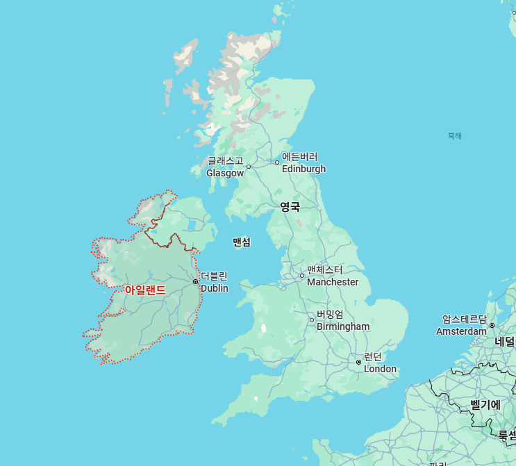 아일랜드는 영국 옆에 위치한 조그마한 나라로 섬을 뜻하는 island가 아니라 Ireland 이다.