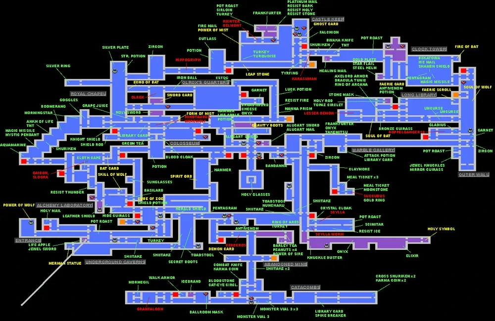 아이템도 반짝이로 표시를 해 둬서 키 아이템을 못찾아 뺑뺑이를 돌게 만드는 일은 없도록 잘 배려했다. (회복 아이템은 녹색, 무기 아이템은 빨간색, 키 아이템은 파란색으로 반짝인다.)