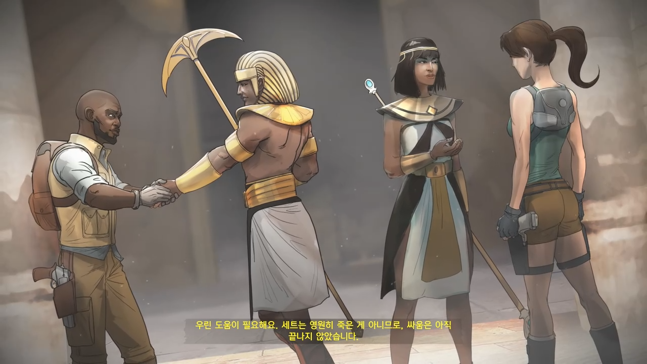 지팡이에 의해 봉인되어 있던 이시스와 오시리스의 아들인 호루스가 깨어나며 세트를 막기 위해서 라라에게 협력하기로 한다.