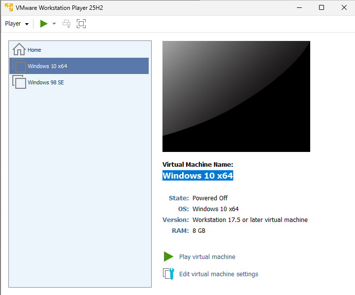 더욱이 심플한 UI가 마음에 들어 단종된 VMWare Workstation Player를 아직 쓰고 있다. VMWare Workstation Pro와 엔진을 공유하기에 아직까지 지원을 유지하고 있는 Pro를 업그레이드하면 Player도 따라서 업그레이드 된다.